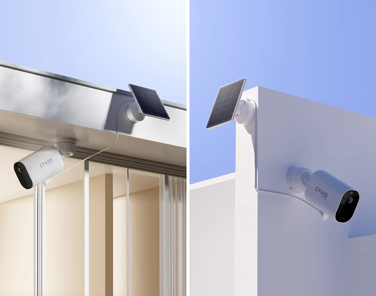 Install the solar panel and battery camera together for a compact, all-in-one solution that saves space.