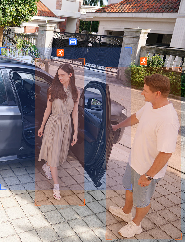 The PIR motion sensor and AI detection specifically identify humans and vehicles, minimizing false alarms for precise notifications.