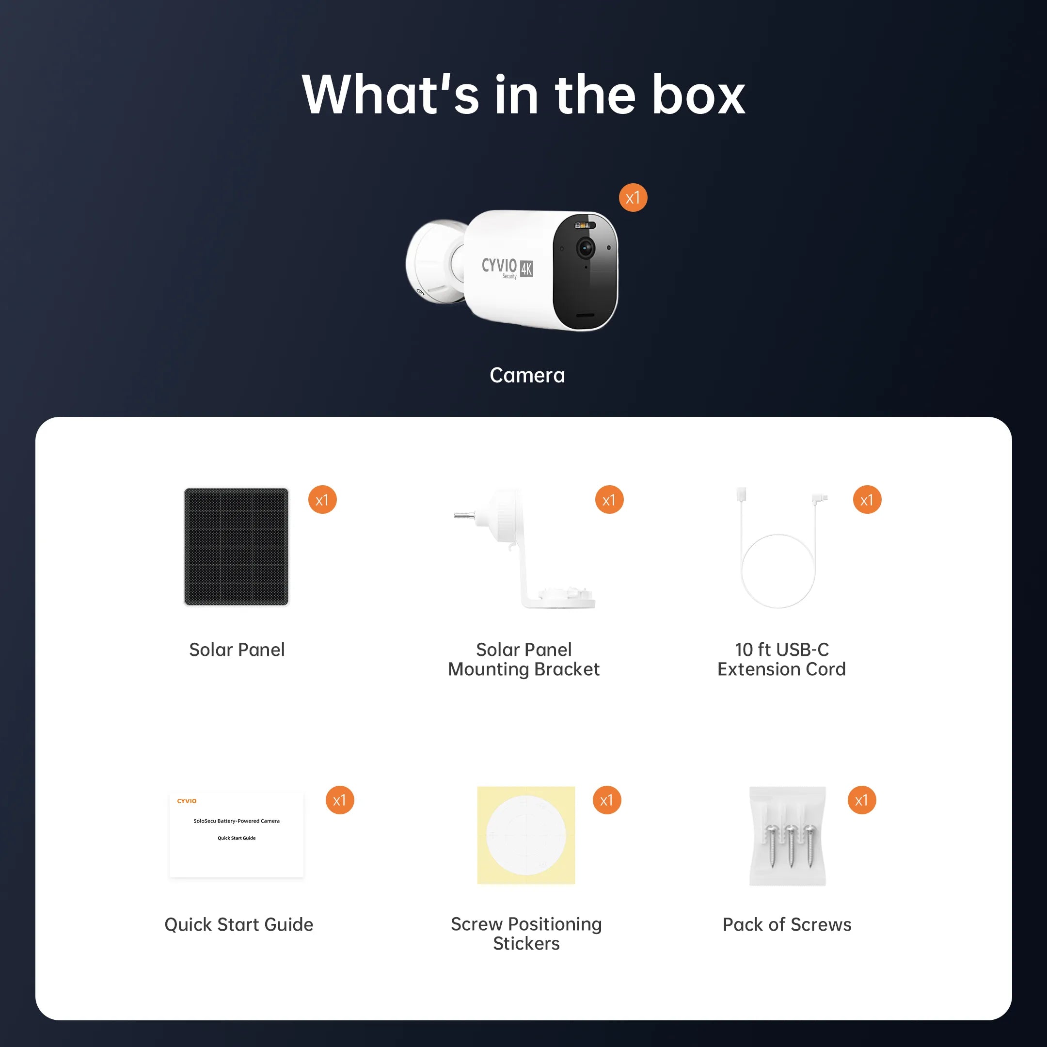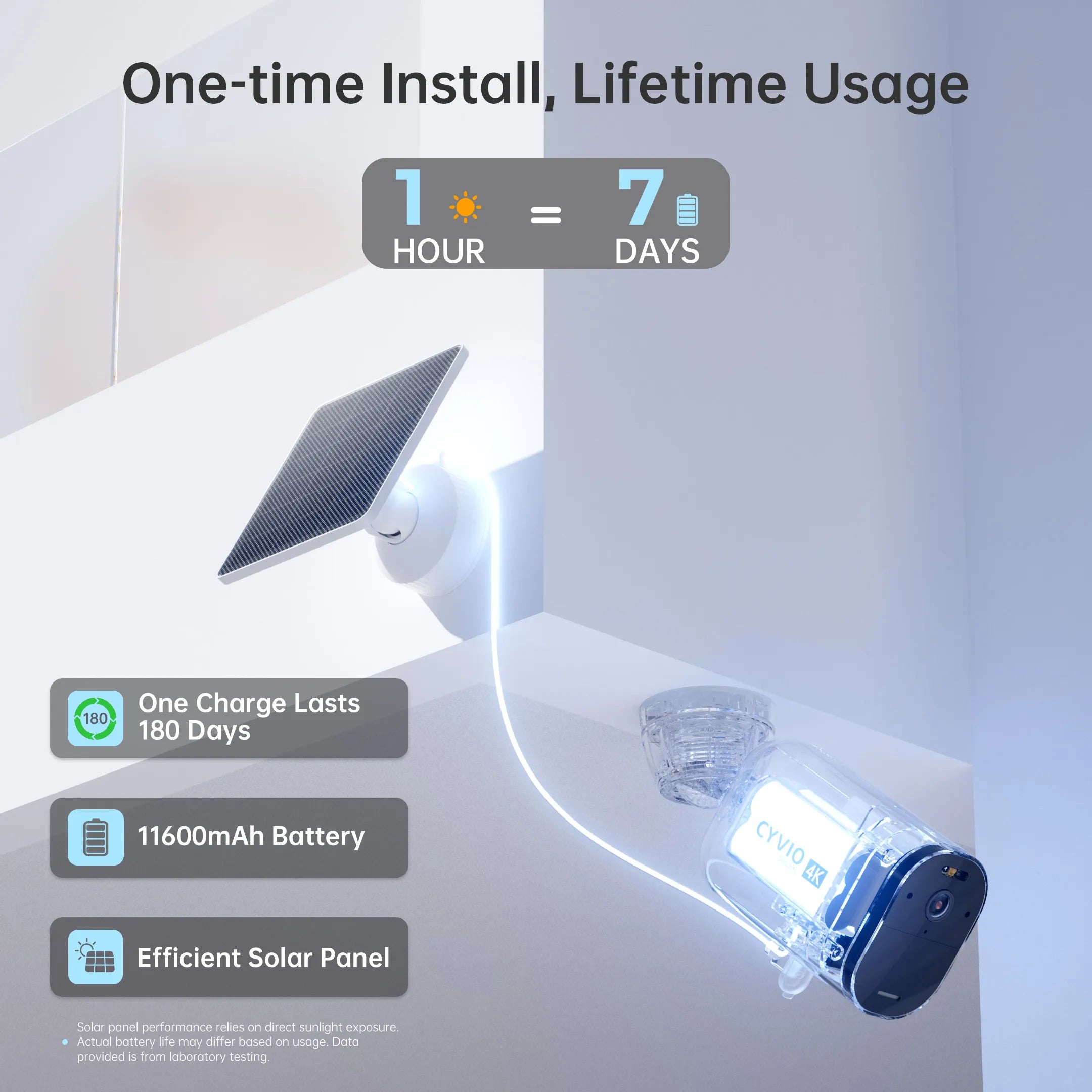 CYVIO 4K Wireless Battery & Solar Powered Secuirty Camera with 16GB microSD Card