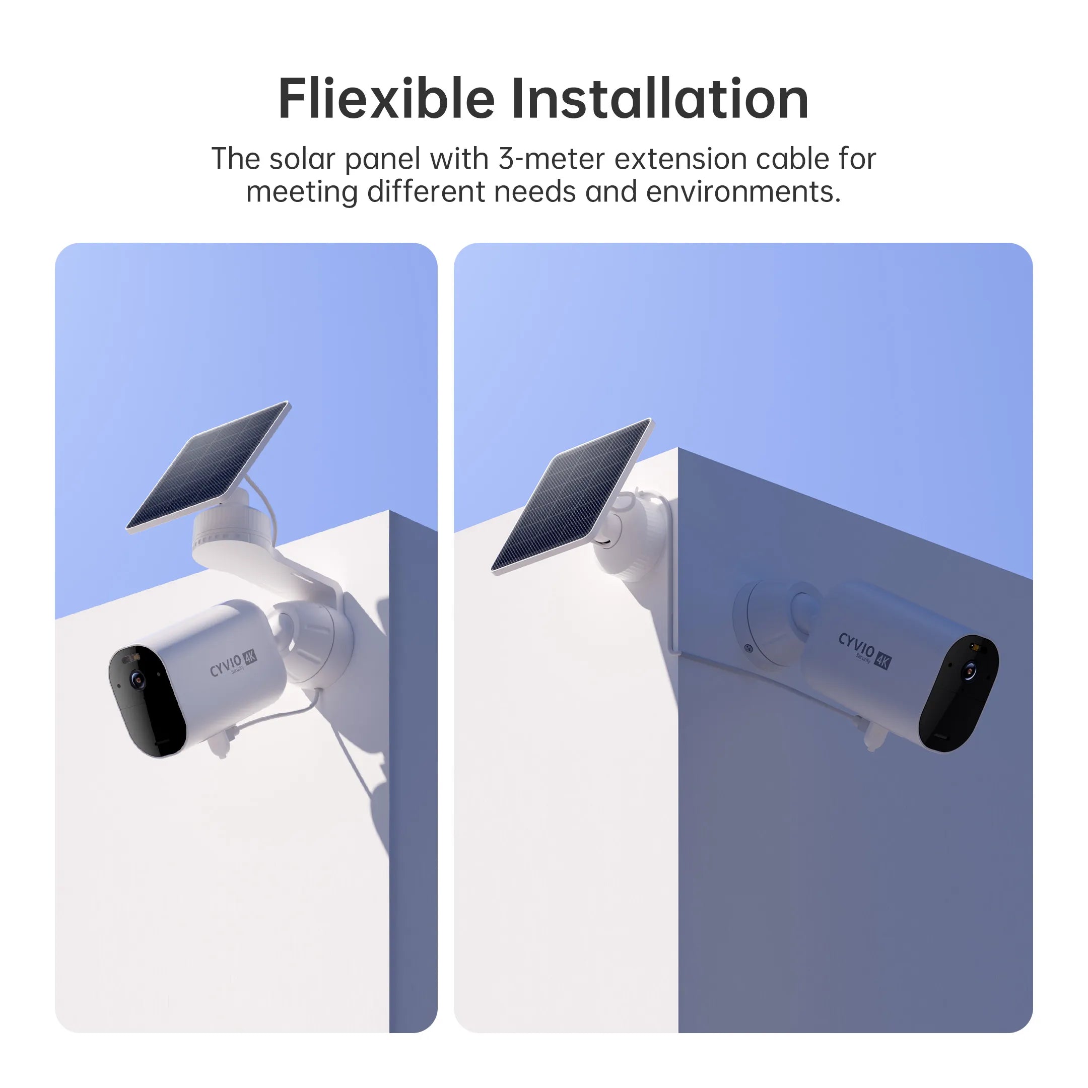 Install the battery camera and solar panel separately when needed. Comes with extension cables for flexible placement.