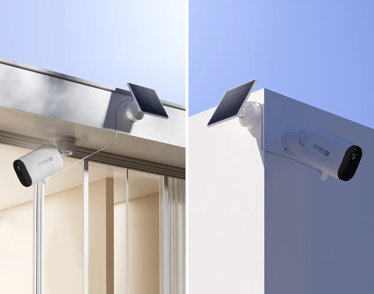Install the solar panel and battery camera together for a compact, all-in-one solution that saves space.